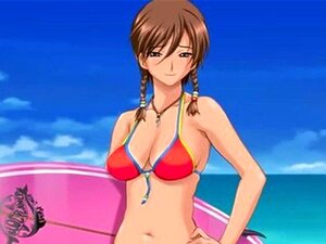 Rubia hentai con enormes tetas en traje de baño