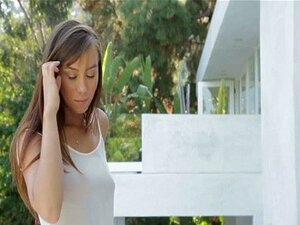 Video de NubileFilms: Naughty Moment, vestida con un camisón largo y un sujetador azul y bragas a juego, la belleza pechugona April Oneil deja que sus manos recorran su cuerpo con suaves caricias sensuales antes de comenzar a quitarse la ropa de una pieza